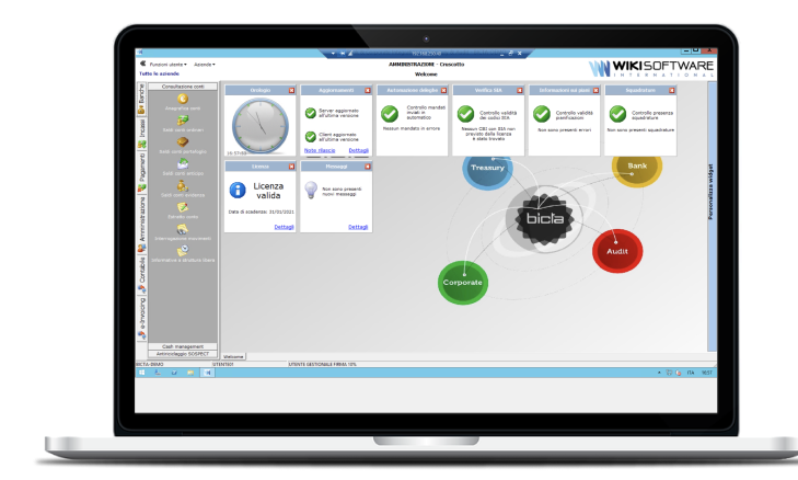 BICTA si pone al centro dei processi di gestione della tesoreria e delle finanze in azienda. Dialoga in automatico con il mondo bancario e con il mondo gestionale e li fa funzionare per mezzo di sofisticati processi di back-office schedulati e completamente personalizzabli.