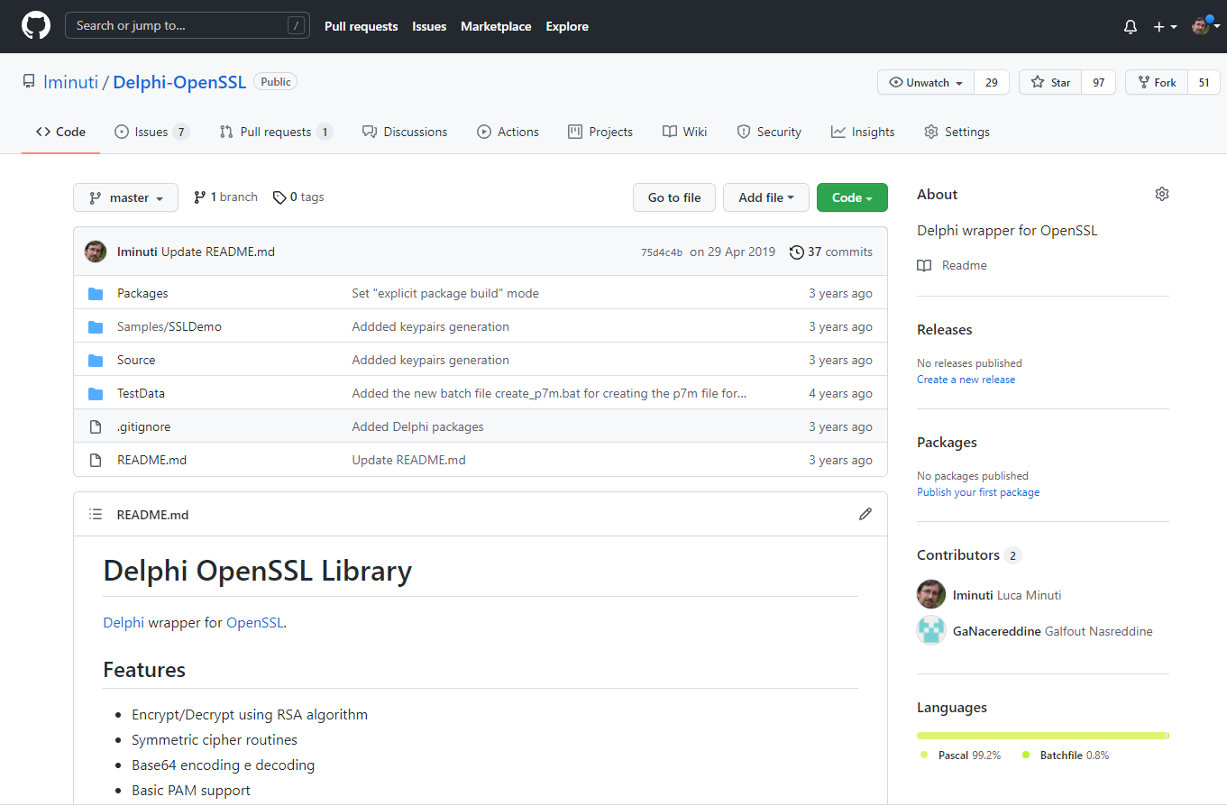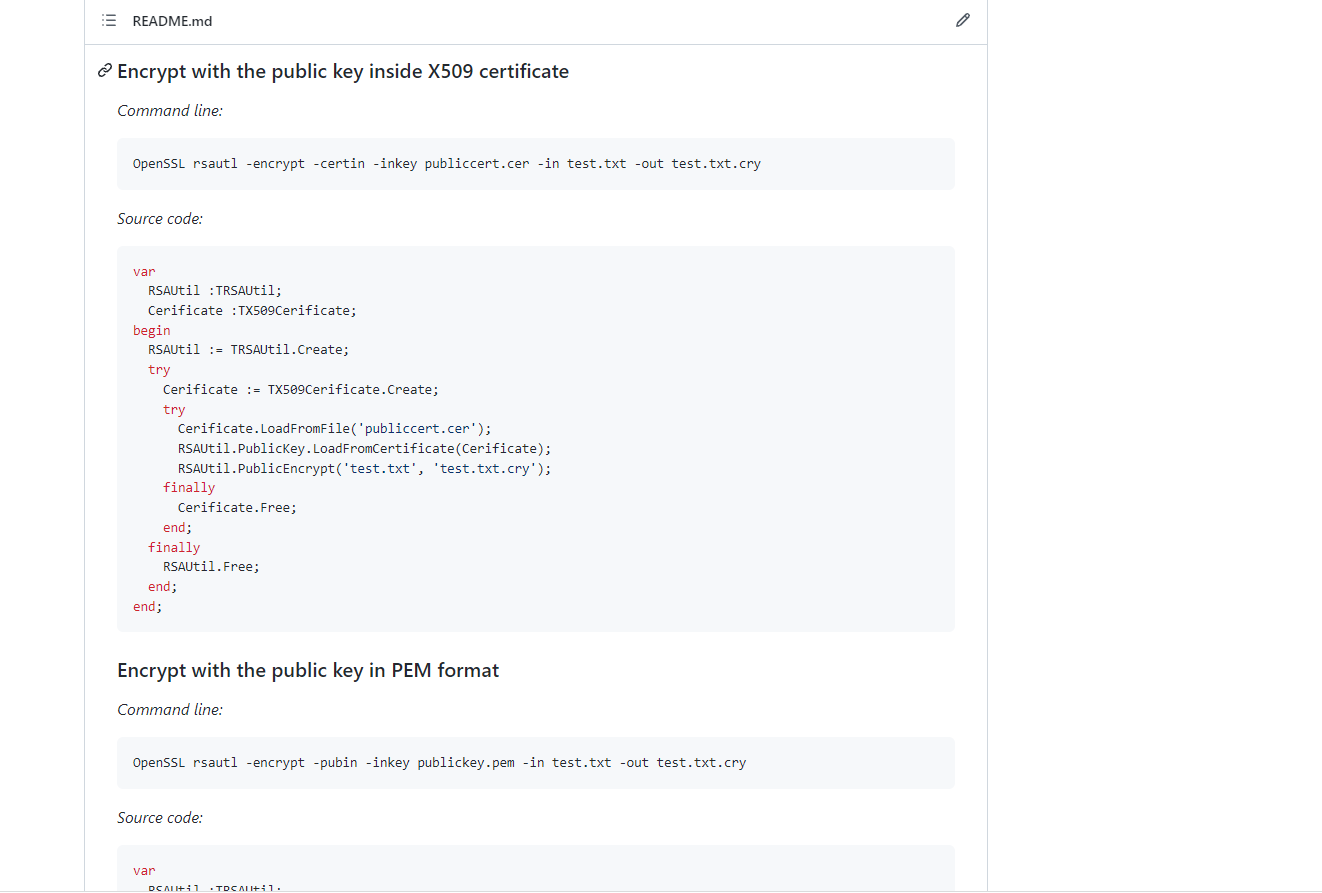 Questa libreria cerca di rendere il più semplice possibile l'uso delle principali funzionalità di OpenSSL con Delphi.